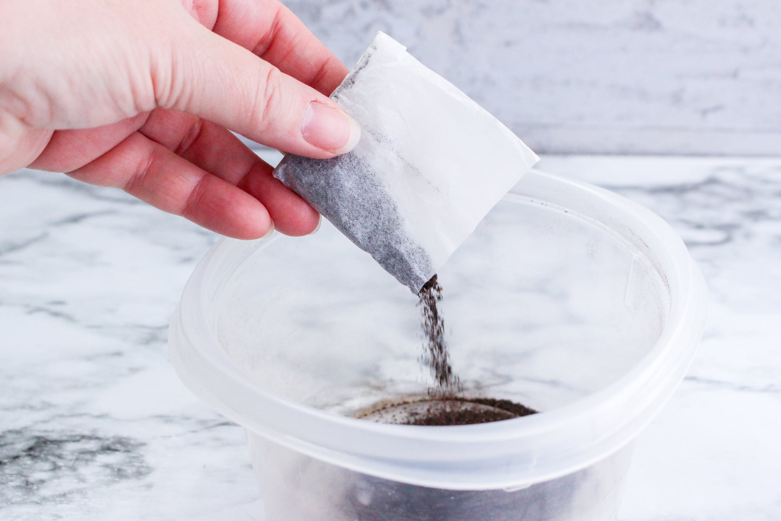 2. Unfold the tea bag and empty the contents.