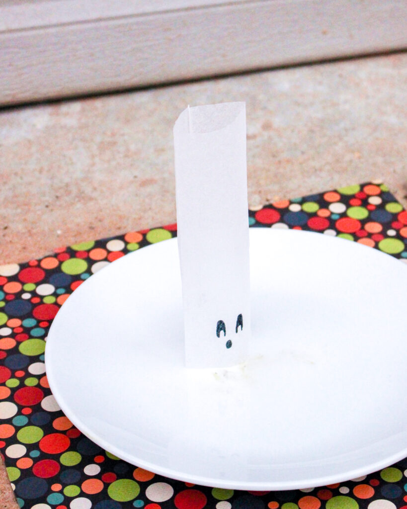 Make sure you’re working in a completely draft-free area. Something as small as a ceiling fan or an open window can cause the tea bag ghost to tip over instead of floating! A calm, still space helps the tea bag burn evenly, creating the rising effect that makes your ghost appear to lift into the air.